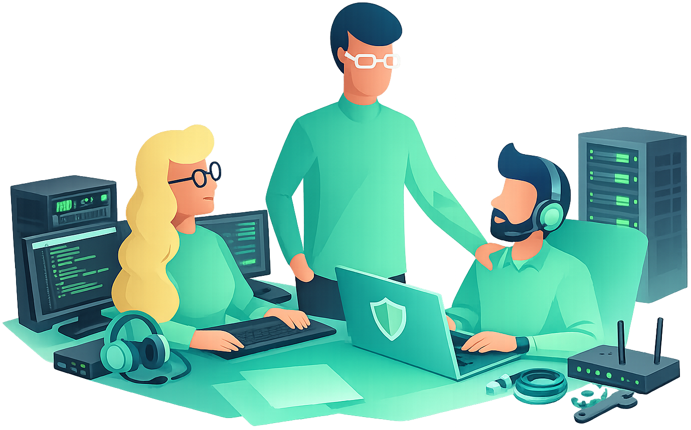Wir helfen Unternehmen dabei, eine zuverlässige und alltagstaugliche IT-Umgebung aufzubauen. Als IT-Systemhaus planen wir Hardware, richten Netzwerke und Arbeitsplätze ein und sorgen dafür, dass neue Systeme sauber integriert, sicher konfiguriert und langfristig betreut werden. Unser Ziel ist eine IT, die stabil läuft, mit Ihrem Unternehmen mitwächst und Ihre Teams im Tagesgeschäft spürbar entlastet.